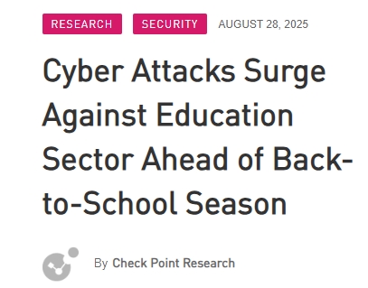 隨著數百萬學生重返課堂和校園,學校面臨另一個挑戰:網路攻擊急劇增加。根據 Check Point Research 的數據,從 2025 年 1 月到 7 月,教育產業繼續成為全球最受攻擊的產業,平均每個機構每周遭受 4,356 次攻擊,年增 41%。 全...