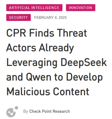 在人工智慧模型 DeepSeek 和 Qwen 推出後不久,Check Point Research發現網路犯罪分子迅速從 ChatGPT 轉向這些新平台來開發惡意內容。威脅行為者正在分享如何操縱模型並顯示未經審查的內容,最終允許駭客和犯罪分子使用人工智慧來創建惡意內容...